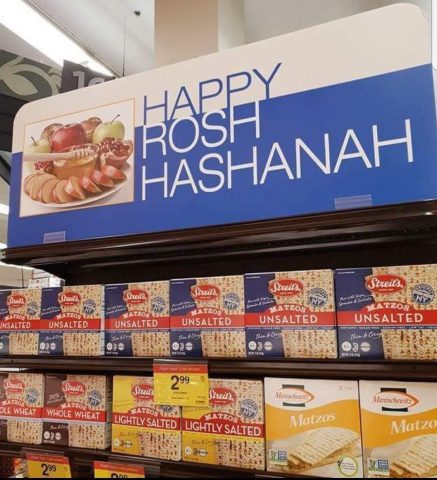כנראה שהיה מדובר ברצון להציג את השלט ליד מאכלי החג – אך במקום לשים תפוחים ודבש (שהוצגו בשלט עצמו) או רימונים, הנהלת הסופר החליטה להציב מצות ליד השלט. בין אם מדובר בטעות אנוש, ובין אם בחוסר הבנה בהלכות החג, השלט זכה תוך זמן קצר לפרסום רב על ידי חברי הקהילה היהודית, ששיתפו את הטעות המשעשעת ברשת.