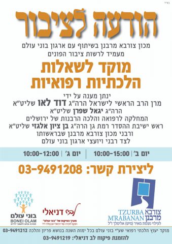 המוקד הטלפוני יפעל מחר ערב יום כיפור בין השעות 10:00 ל-12:00 בטלפון 03-9491208