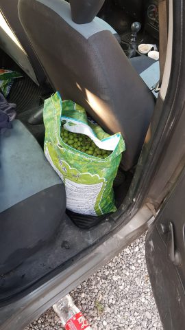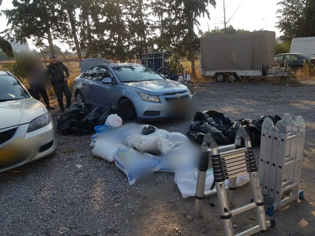 צוותים של מג"ב שהגיעו אל המקום הבחינו ברכב חשוד שיצא בנסיעה מאזור המטע. השוטרים שדלקו אחריו, הצליחו לעצור את הרכב בו נסעו אב בשנות ה- 40 לחייו ובנו בן ה- 15 תושבי אבו גוש. בחיפוש ברכב אותרו כ- 400 ק"ג זיתים שככל הנראה מסקו החשודים וגנבו מהמטע הסמוך למסילת ציון.