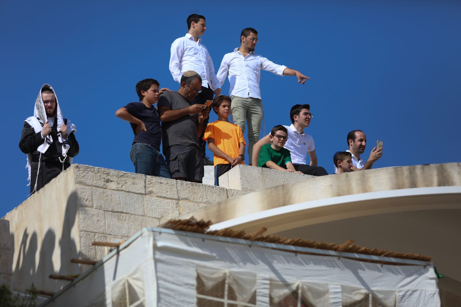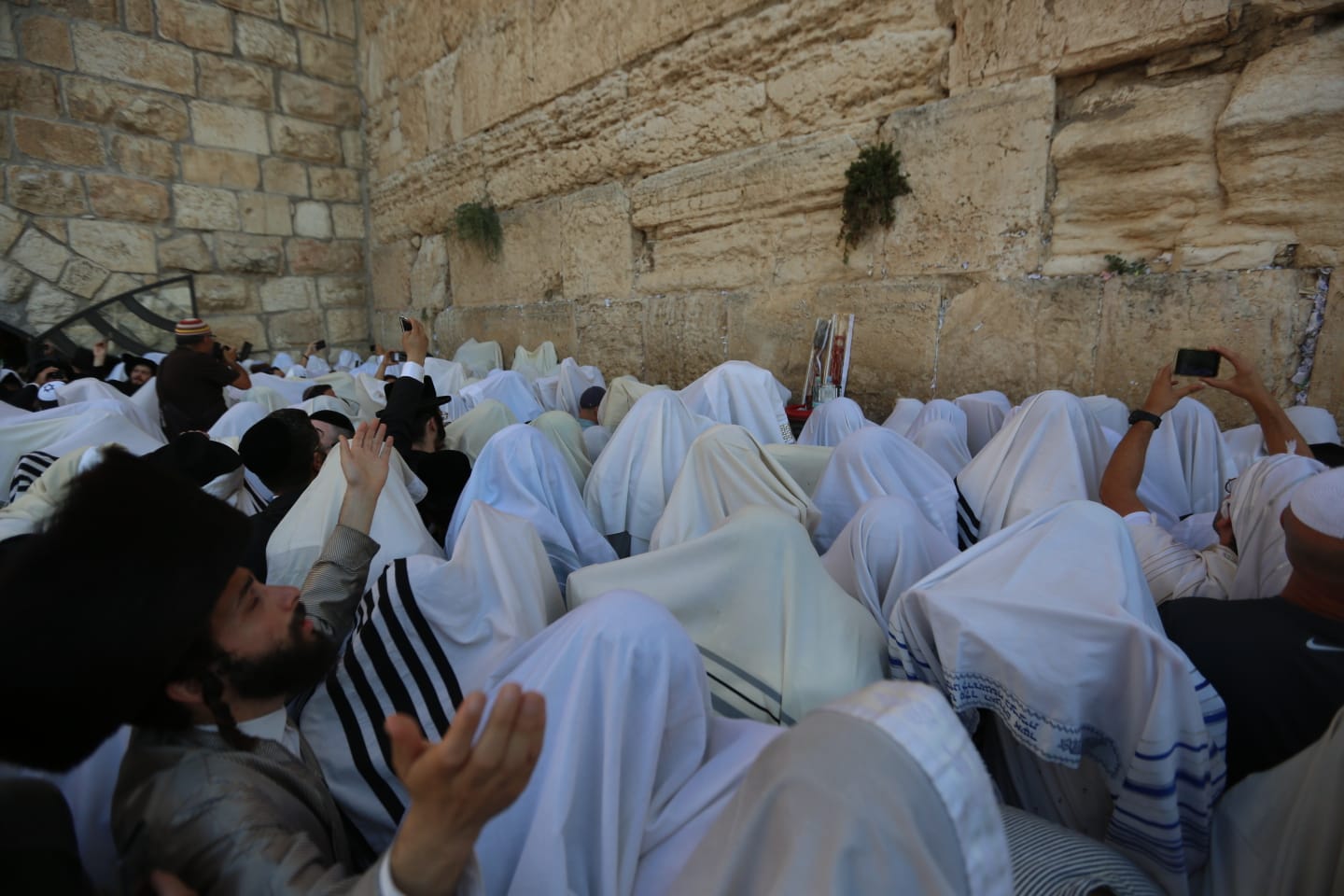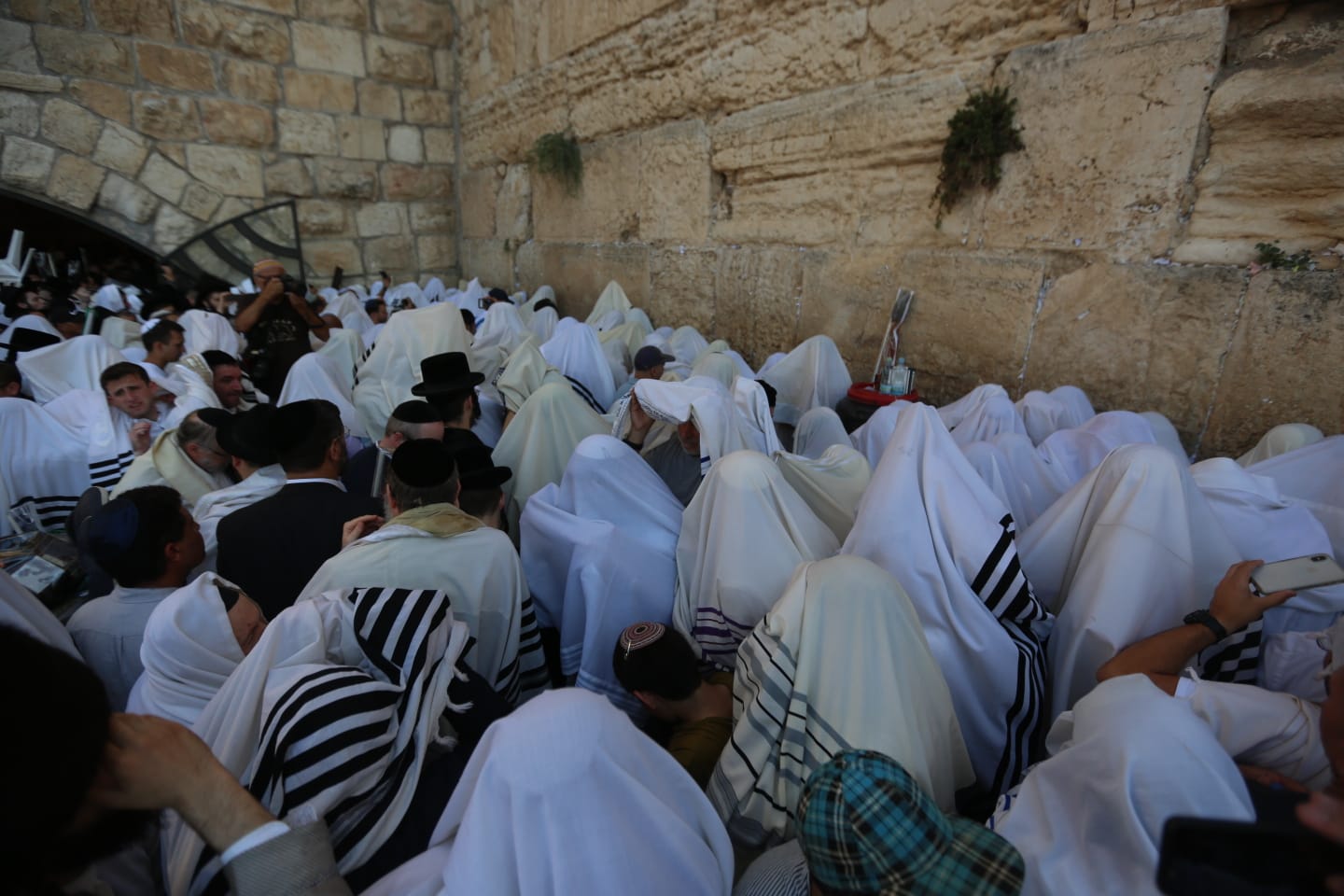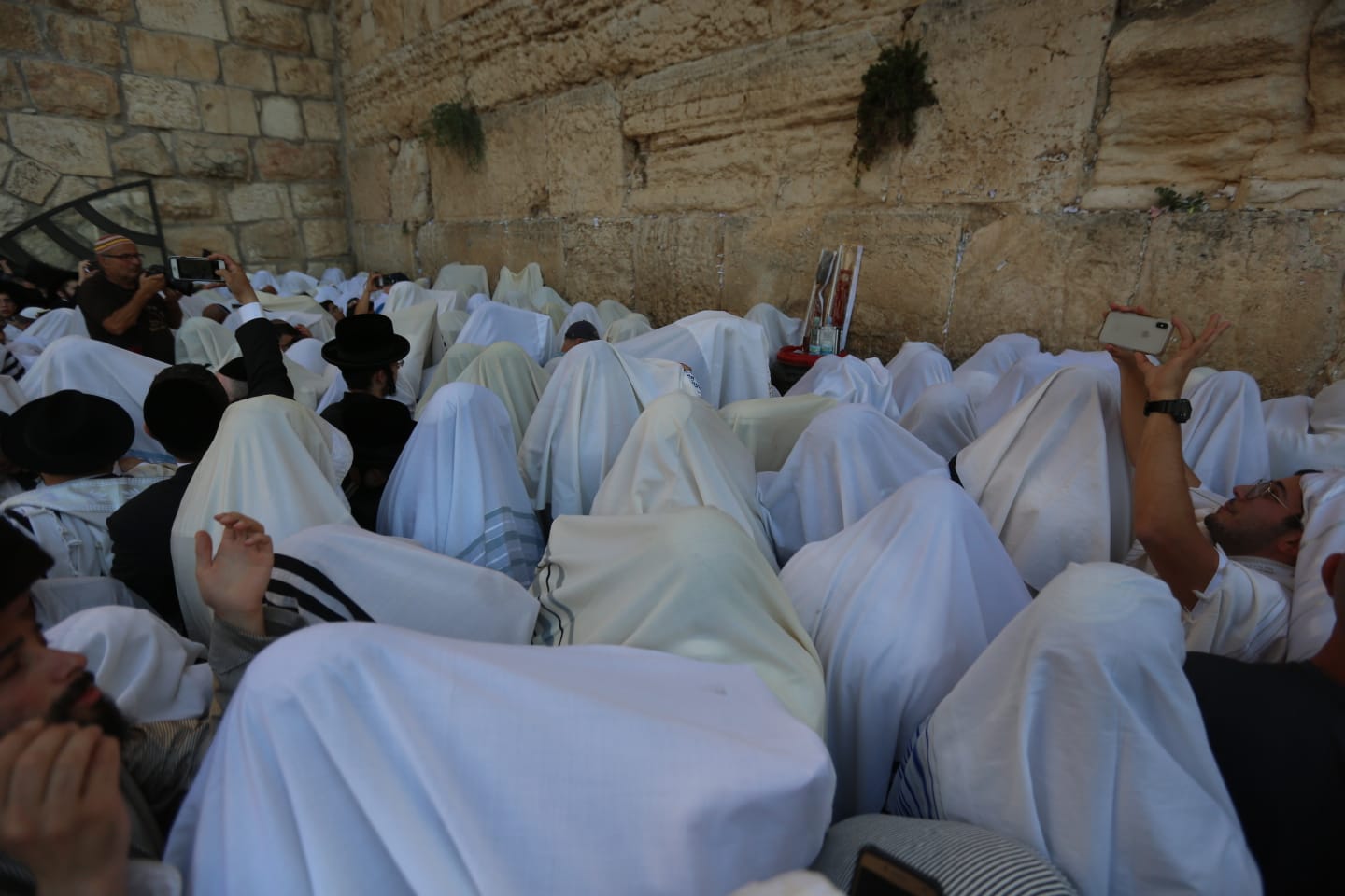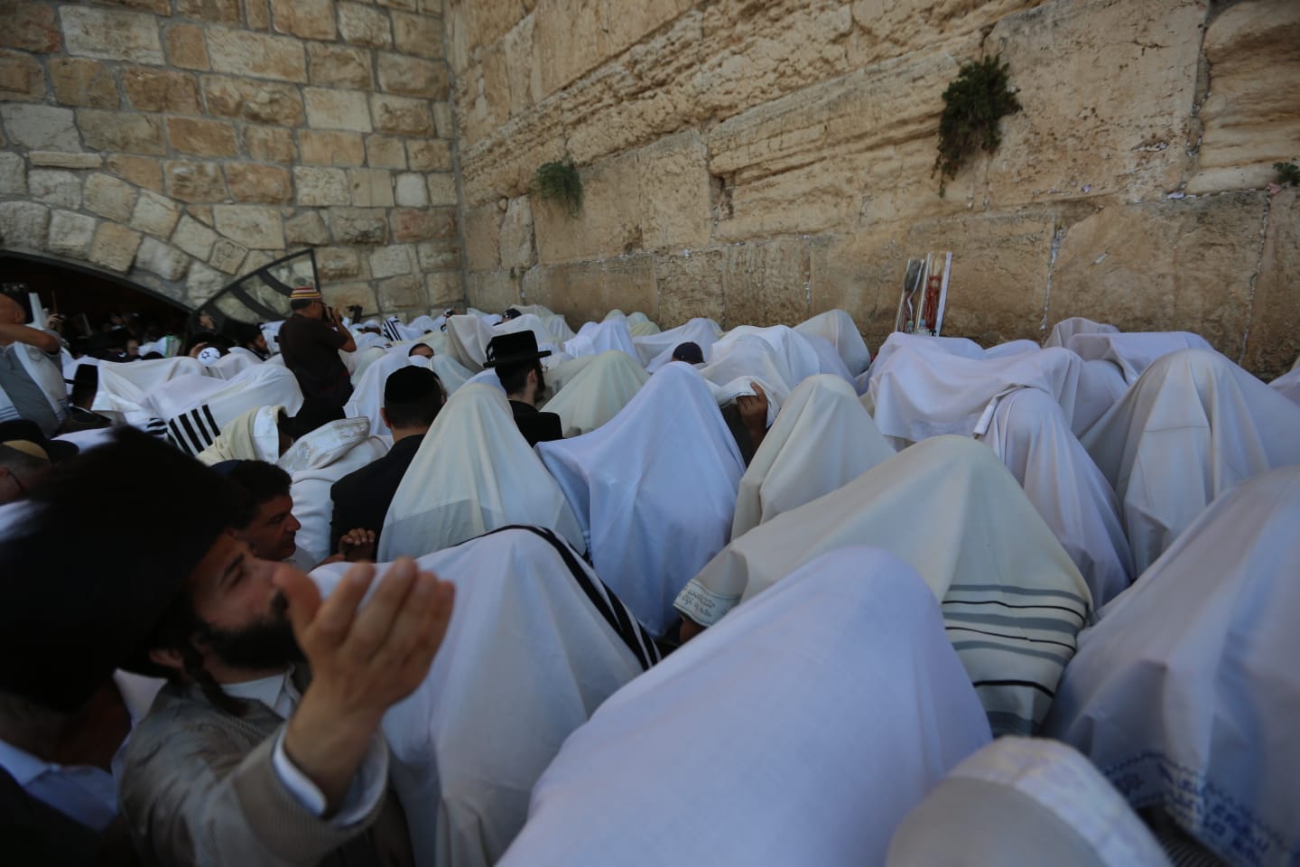 עטופים בטליתות וארבעת המינים בידיהם; צפו בגלריית הענק מהתפילה בכותל: