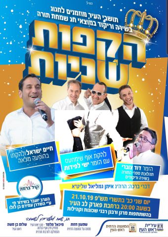 במוצאי החג השני, יערכו בשעה 21:00 הקפות שניות בשני מוקדים בעיר – רחבת היכל התרבות ברחוב עמק דותן 49 ובמרכז לב רעות. כולכם מוזמנים!