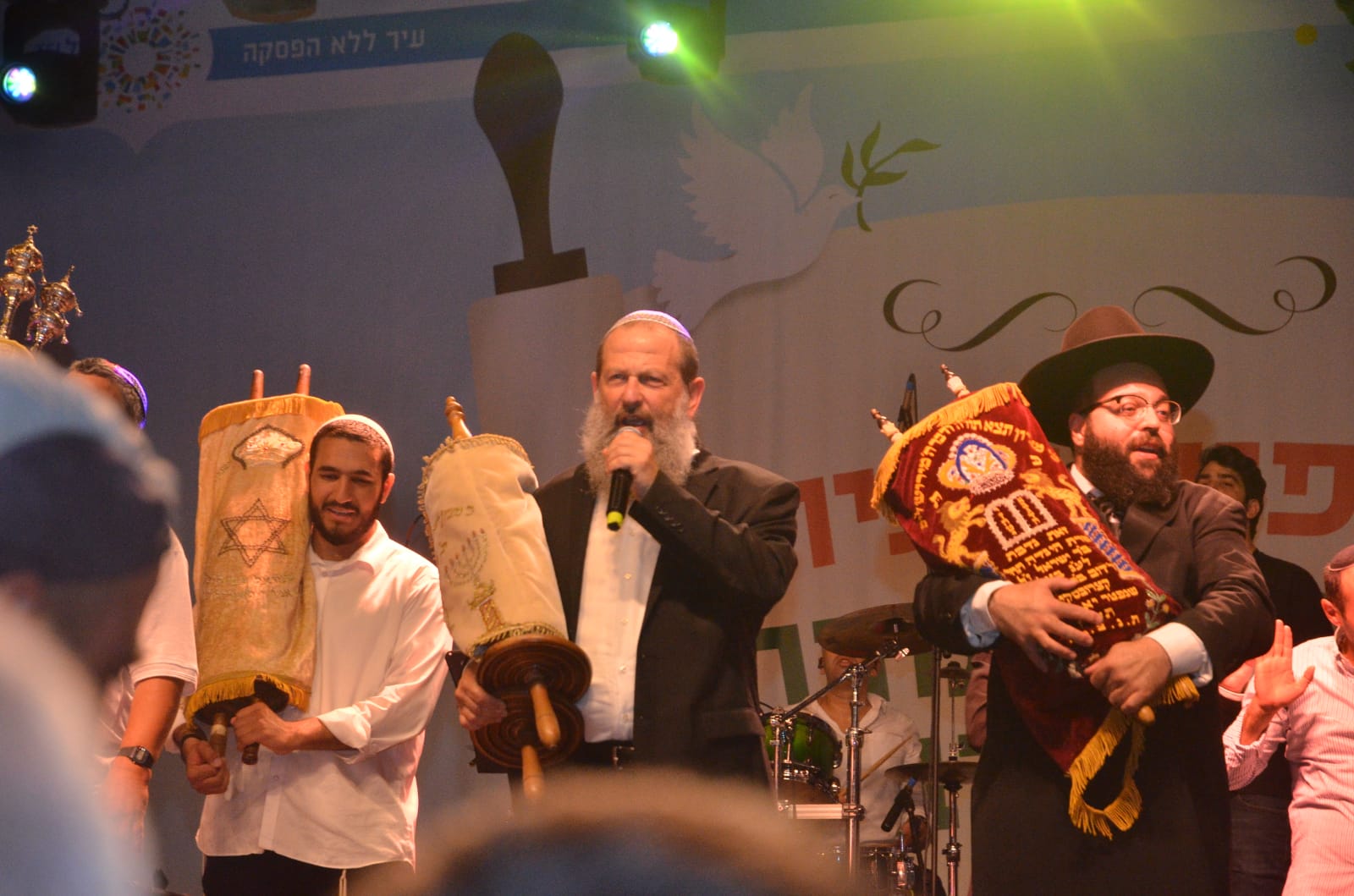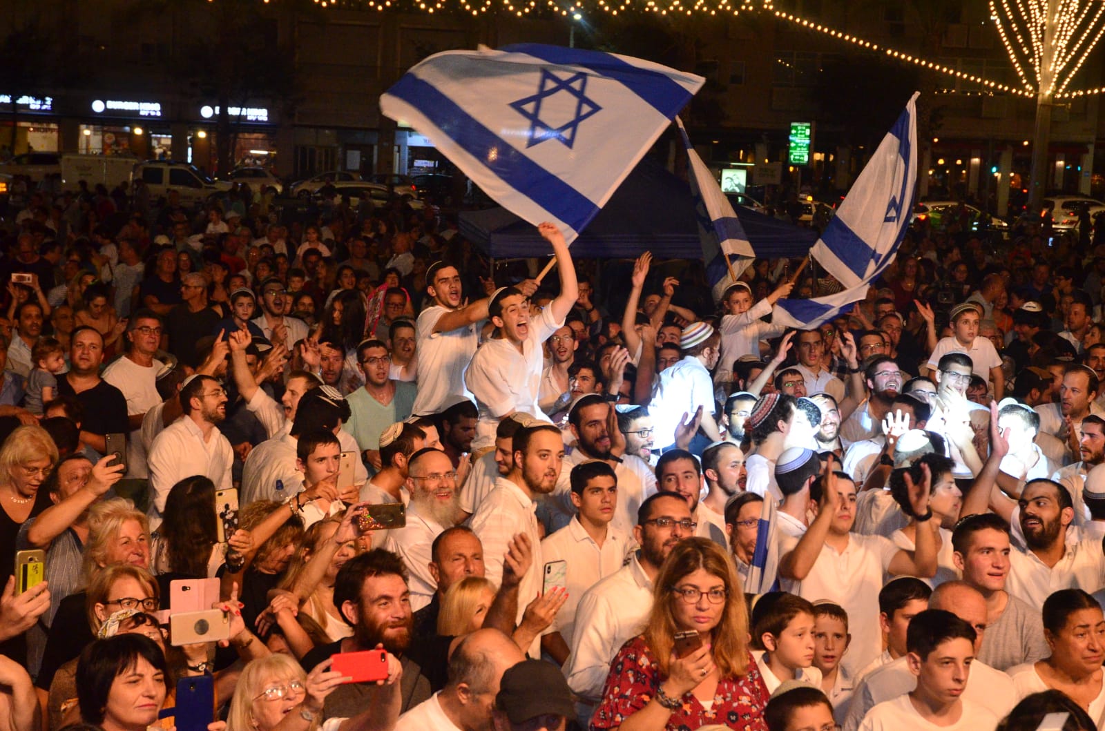 הכיכר נצבעה הלילה (ב) בצבעים של שמחה בהקפות השניות יחד עם תלמידי הישיבה שהגיעו מצוידים בדגלי ישראל. שהתאימו לצבע בו נצבע בניין העירייה. על השירה היה אחראי ישראל פרנס ולהקתו.
