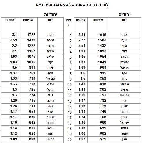 השמות הנפוצים לילדים יהודים לפי הלמ"ס (סריקה)