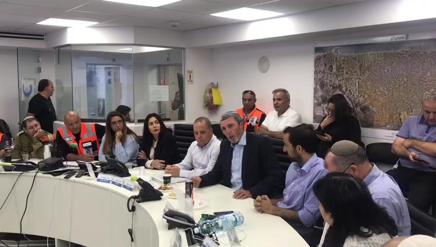 שר החינוך רפי פרץ ביקר הערב בחמ״ל עיריית אשקלון יחד עם השרה מירי רגב, ראש העיר תומר גלאם, חבר מועצת העיר עמיחי סיבוני וצוותי החירום של העיר.