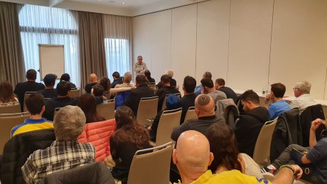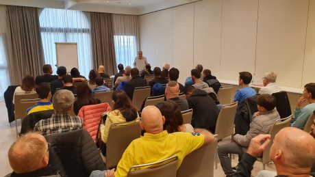 המפגש המיוחד נערך אתמול (רביעי) בטיסת הצהובים לקראת המשחק מול קבוצת הכדורסל הספרדית, בסקוניה הערב בשעה 22:00.