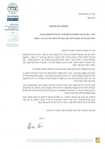 במכתב המתפרסם לראשונה בסרוגים, כותב הרב כי הוא אינו חלק מתנועה גורפת של התנגדות לחיסונים. "להפך, אני סובר שעולם החיסונים הביא ברכה רבה לעולם, הוא חיוני מאוד, וחלק מהיכולת של קבוצות מסוימות להסתדר בלעדיו נובעת מהעובדה שרוב הציבור כן מחוסן. אם לא כך היה המצב – התוצאות האפידמיולוגיות היו חמורות מאוד."
