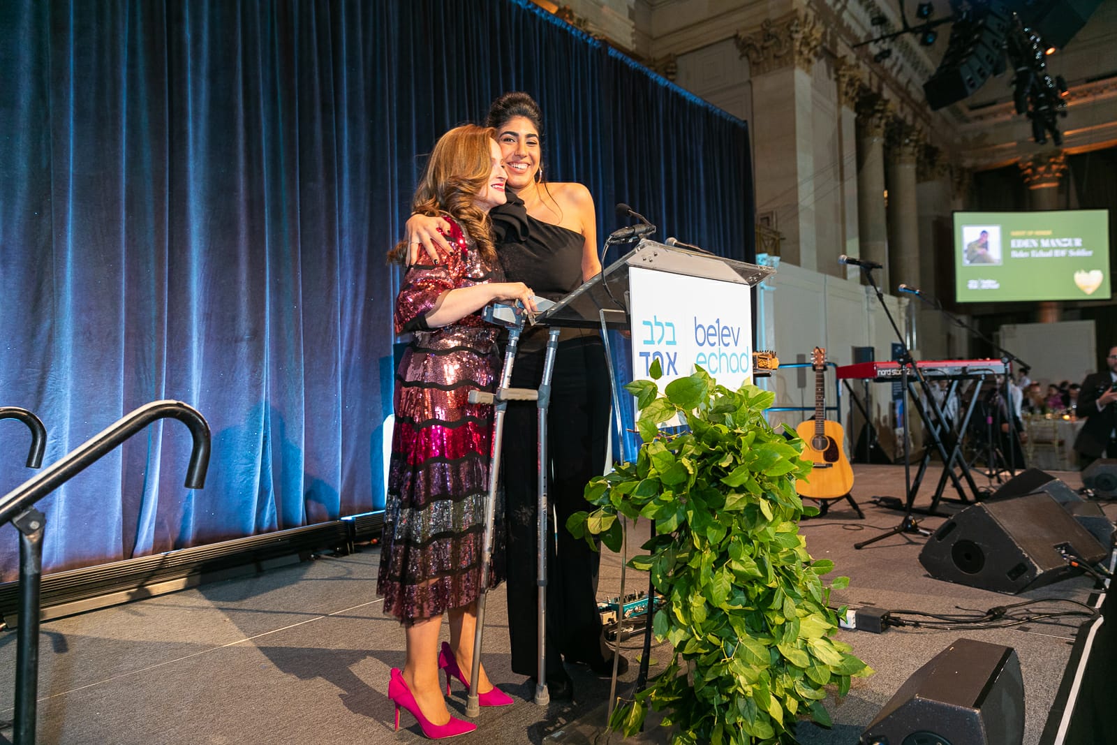 "בלב אחד הייתה כתף תומכת בשבילי הן פיזית והן נפשית מהרגע שפגשתי אותם בבית החולים. הם גם עזרו לי בליווי משפטי צמוד מרגע הפציעה כדי להבטיח שאקבל את כל ההטבות שאני זכאית אליהם. הנה אני כאן אחרי חמישה חודשים מהפיגוע עומדת על הרגליים ומודה לבורא עולם יום יום על הכל, תודה להוריי שלא ויתרו לי, שדחפו אותי קדימה ותודה ענקית לעמותת בלב אחד על האהבה,הנתינה, האכפתיות, הרצון לעזור ולתמוך ולכם האורחים המכובדים שיושבים פה שנתתם לי את ההזדמנות לעלות לבמה הזו ולהכיר לכם אותי.