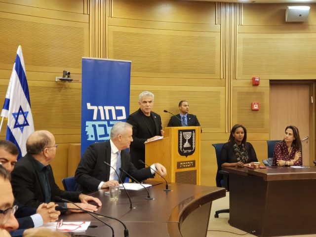 ישיבת הסיעה של כחול לבן אמש (צילום: סרוגים)