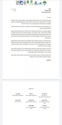 "בימים אלה פורסם כי מדינת ישראל נמצאת במקום השמיני והמכובד במדד המדינות החזקות בעולם", כותבים לנתניהו ראשי המועצות, "על פי יכולת צבאית, כלכלית ומדינית, מדינת ישראל הינה מעצמה עולמית שיש לה תפקיד משמעותי בעניינים גלובליים. מעולם מצבה של המדינה לא היה טוב יותר. זוהי תעודת כבוד לדרך בה אתה מנהיג את מדינת ישראל בעשור האחרון ולהישגים חסרי התקדים שאתה מוביל אותה אליהם".