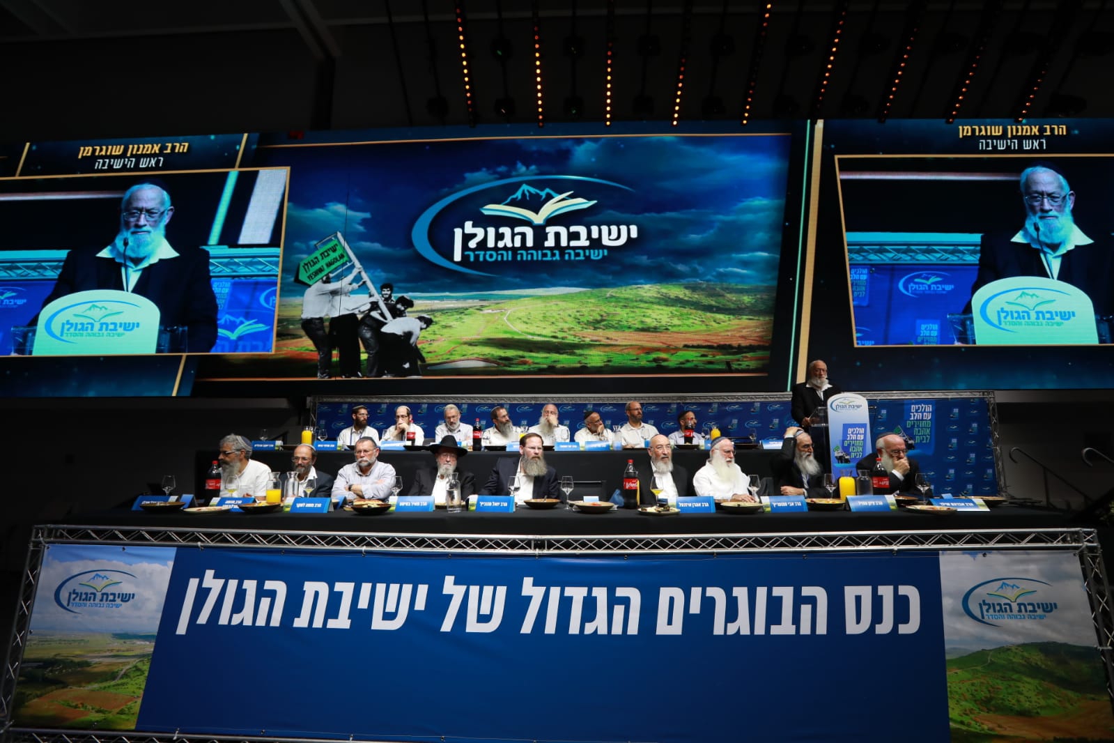 הרב יואל מנוביץ' ראש ישיבת הגולן: "זו זכות גדולה לעמוד כאן יחד עם מאות רבות מבוגרי הישיבה שהיא מגדלור רוחני לכל רמת הגולן כבר כמעט 50 שנה. יושבים כאן דורות של לומדי תורה, בוגרים שכבר מגדלים דור של נכדים לישיבת הגולן. הם יושבים כאן יחד עם בוגרים שקטנים מהם בעשרות שנים ומה שמחבר את כולם יחד זה הלב. יחד איתכם בעזרת ה' נגדיל תורה ונאדירה, נתרחב ונגדל".