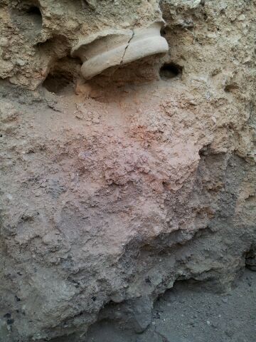 הממצא כולל קנקן שפת צווארון שבור ושכבת אפר שריפה מתקופת ההתנחלות, התקופה בה מת עלי הכהן ונשבה ארון ה' על ידי פלשתים, המעיד על חורבן משמעותי.