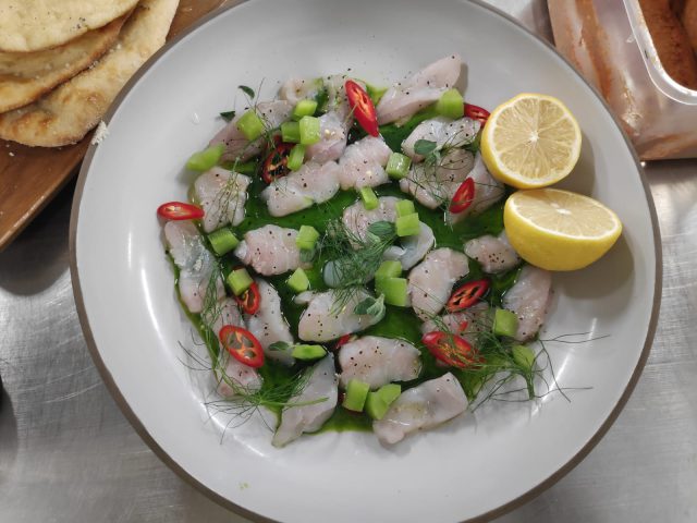 בנוסף, היה למנה הראשונה סלט ירקות חורף וסרדינים. אתם בטח שואלים מה הכוונה ב"ירקות חורף"? זה בעצם מהות ההבדל בין מסעדת שף למסעדה רגילה, במקום לרשום מלפפון, קולורבי וצנון, רושמים 'ירקות חורף'.