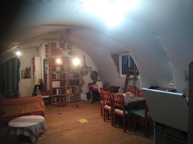 כלפי חוץ, מקום מגוריהם אולי ייראה שונה ממה שהורגלנו: אוהל עם יריעות שבכלל נלקחו מפרסומות ישנות באיילון. האוהל אטום עם 2 שכבות של בידוד ורק לאחרונה הוסף בד בצבע לבן כדי להאיר את הבית.