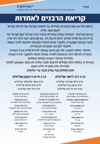 גם רבני האיחוד הלאומי חתומים על המכתב