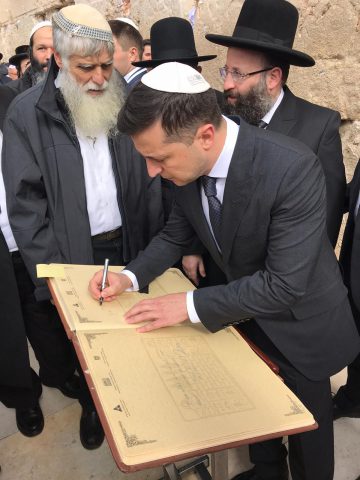 רגע לפני הטקס המרכזי של פורום השואה הבינלאומי ביד ושם, נשיא אוקראינה וולדימיר זלנסקי הגיע היום (חמישי) לכותל המערבי, שם התקבל על ידי רב הכותל והמקומות הקדושים שמואל רבינוביץ׳ ומנכ״ל הקרן למורשת הכותל, מר מרדכי (סולי) אליאב.