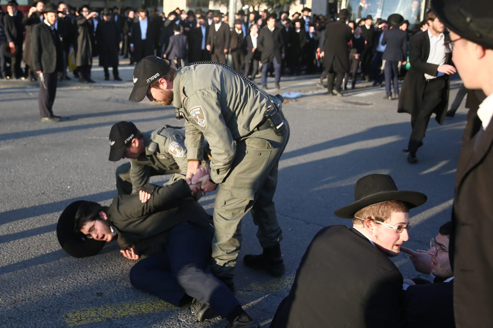 השוטרים ובהם לוחמי מג"ב פעלו נגד המפגינים שחסמו את הכביש והתנועה במקום, ועצרו 38 חרדים מתוכם. במקביל, כוחות משטרה נוספים נפרסו בצמתים באזור בכדי להחזיר את התנועה לסידרה.