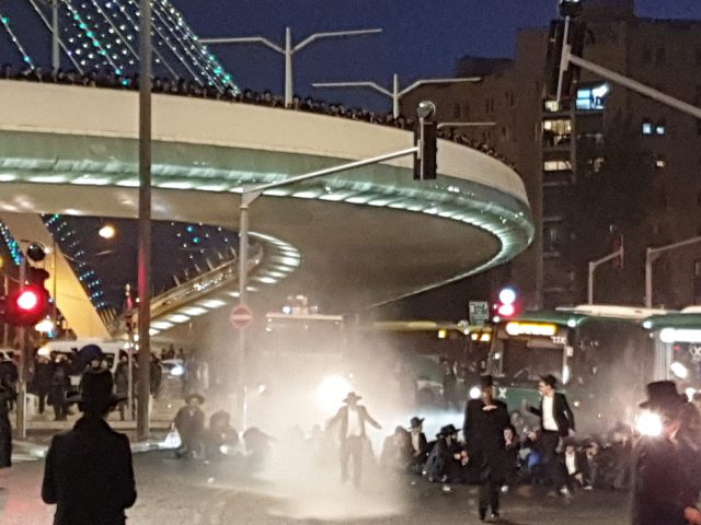 מאות חרדים קיצונים מהפלג הירושלמי הגיעו החל משעות אחר הצהריים להפגין נגד מעצר של בן ישיבה. העריק נעצר לפני כמה ימים והביא לחזרתם של המחאות נגד גיוס החרדים לצה"ל. פעילות כוחות המשטרה נמשכה שעות ארוכות נגד מפרי הסדר שהגיעו לצומת הכניסה לעיר וגשר המיתרים.