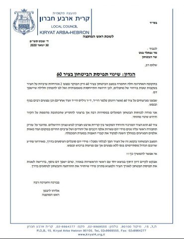 "בתקופה האחרונה חלה החמרה במצב הביטחון בציר 60", פתח היום (חמישי) אליהו ליבמן ראש מועצת קרית ארבע את מכתבתו לשר הביטחון נפתלי בנט בו התריע כי הכביש בין קריית ארבע-חברון לגוש עציון הפך למסוכן. ליברמן דרש מבנט לקיים דיון דחוף עם ראשי הרשויות באזור.