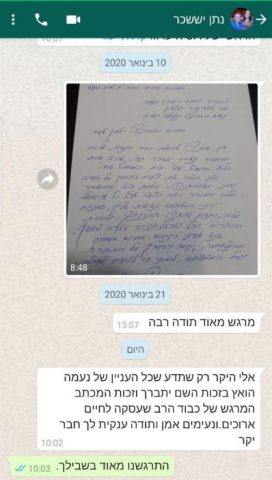 הכתב ארי קלמן פירסם בטוויטר הודעת ווצאפ שנשלחה לעוזרו של הרב, בה הודה לו נתן: "אלי היקר רק שתדע שכל העניין של נעמה הואץ בזכות השם יתברך וזכות המכתב המרגש של כבוד הרב שעסקה לחיים ארוכים ונעימים. אמן ותודה ענקית לך חבר יקר", חתם יששכר.