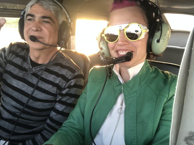 החלק הקשה זה לשמור על המטוס במסלול ותוך רגע אני מקבלת הוראה להרים את המטוס לשמיים וזהו אנחנו באוויר, קצת ימינה, קצת שמאלה, כמה סיבובים בשביל להרגיש את כוח הג'י, בחילה קטנה ואני אשכרה מרגישה טייסת, בשלב מסויים אורי רוצה קצת לאתגר פה את כל הסיטואציה ומכבה לי את המנוע, "את רואה, אנחנו טסים עכשיו בלי מנוע, לא התרסקנו, אנחנו לאט לאט מאבדים קצת גבוה, אבל שולטים לגמרי במטוס ואם נצטרך נוכל להנחית את המטוס בזהירות בשטח פתוח" אוקיי צחקנו מספיק, חשבתי לעצמי "אורי!! תדליק את המנוע!" המנוע חוזר לעבוד ואני חוזרת להיות רגועה מספיק בשביל ליהנות מאחת השקיעות היפות.