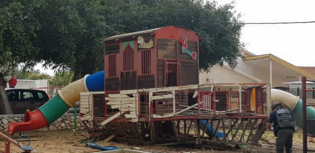 בניר עם ניזוקו רכבים מרסיסי המיירטים והרקטות, אחד הרסיסים פגע בגן שעשועים סמוך לישיבת ההסדר בשדרות.