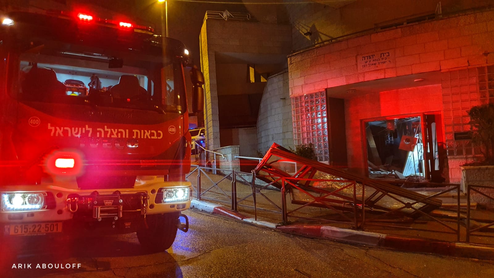 מפקד כוחות כב"ה בשטח מדווח, כי מדובר במבנה בן 3 קומות, המשמש כבית כנסת ואולם אירועים הנמצא בקומה התחתונה של המבנה.בקומה זו (התחתונה), הצטבר ככה"נ גז שדלף על פי החשד מצובר גז סמוך. בשלב מסויים, נוצר ניצוץ שגרם לפיצוץ הגז ולהרס משמעותי במבנה.עוד נמסר מלוחמי האש בשטח, כי בעקבות הפיצוץ, יש חשש לקריסת המבנה, ולפיכך הוזמן מהנדס מבנים מסוכנים למקום.