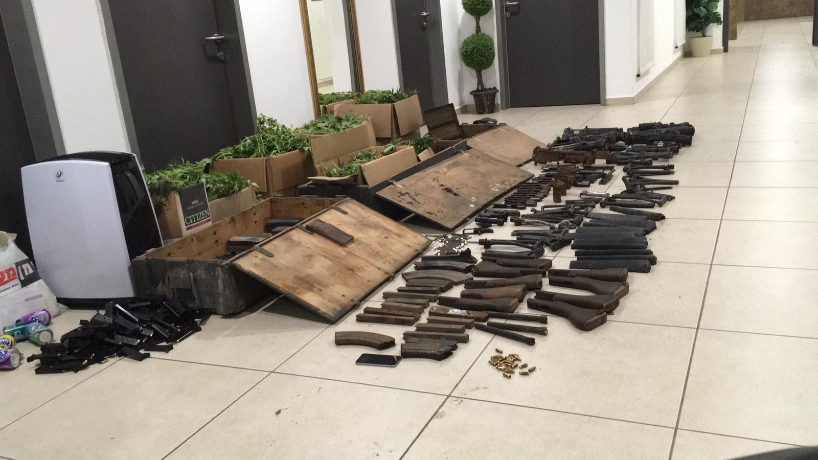 בפשיטה על בית בדרום תל אביב איתרו אמש שוטרי משמר הגבול של משטרת ישראל 42 ק"ג חומר החשוד כסם מסוג קנאביס ומאות חלקי נשק.