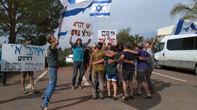 הצעייקם הניפו שלטים בהם נכתב: "אל תתנו לטרור לנצח. אל תתנו פרס לתומכי שאהדים".  וקראו קריאות בעד נתניהו: "בוגי, בני וגבי, לא ייתכן ששנאת נתניהו תוביל אתכם, שלושה רמטכ"לים, לסכן את בטחון המדינה".
