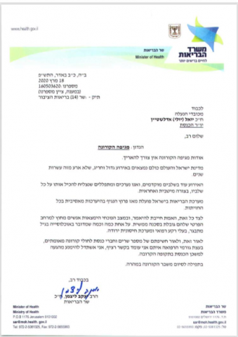 בתוך כך, שר החינוך רפי פרץ לא חש בטוב ביממה האחרונה, עקב כך השר נשאר בביתו אתמול והיום. בהמלצת הרופאים השר ביצע בדיקת קורונה והיום התקבלה תוצאה שלילית.