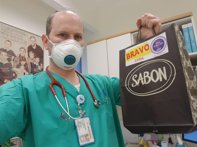 יוסף חיים ישראלי מתנדב הארגון המרכז את החלוקה: "ההרגשה להיות שותף בחלוקה של מאות מתנות ותלושים מהצלה ללא גבולות לצוותים רפואיים שנלחמים בחזית המאבק בנגיף, מוסיפה ומביאה לנו המתנדבים המון סיפוק, אנחנו מעלים להם חיוך רחב על הפנים וזה שווה הכל".