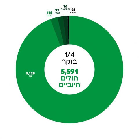 21 נפטרים מנגיף הקורונה בישראל. נתון קשה נוסף איתו פותחים את הבוקר הוא ש-76 מונשמים מתוך 97 חולים במצב קשה. 5,129 במצב קל.