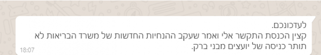 מהכנסת התקשרו ל-15 יועצים פרלמנטריים שבתעודת זהות נכתב כי הם מתגוררים בבני ברק והודיעו להם על האיסור להיכנס למשכן עד להודעה חדשה, למרות שהוגדרו בעבר עובדים חיוניים.