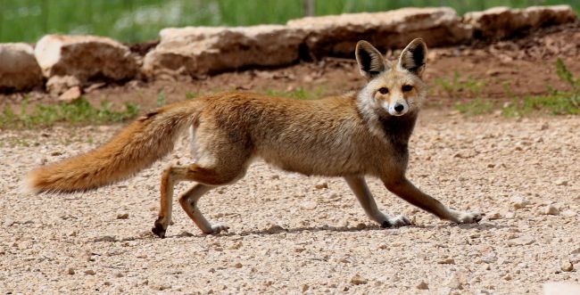 זאב מטייל לו בגן לאומי ממשית העיר הנבטית הקדומה שבנגב