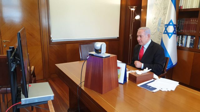 נתניהו מנהל את ישיבת הממשלה בשיחת וידאו (צילום: קובי גדעון\לע"ם)