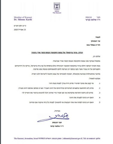 בנוסף תהה האם יש כוונה לפצות את הזוג והאם יש כוונה לפתח את שתי הגבעות או להמשיך לפנות כל בית שיבנה שם ומדוע?