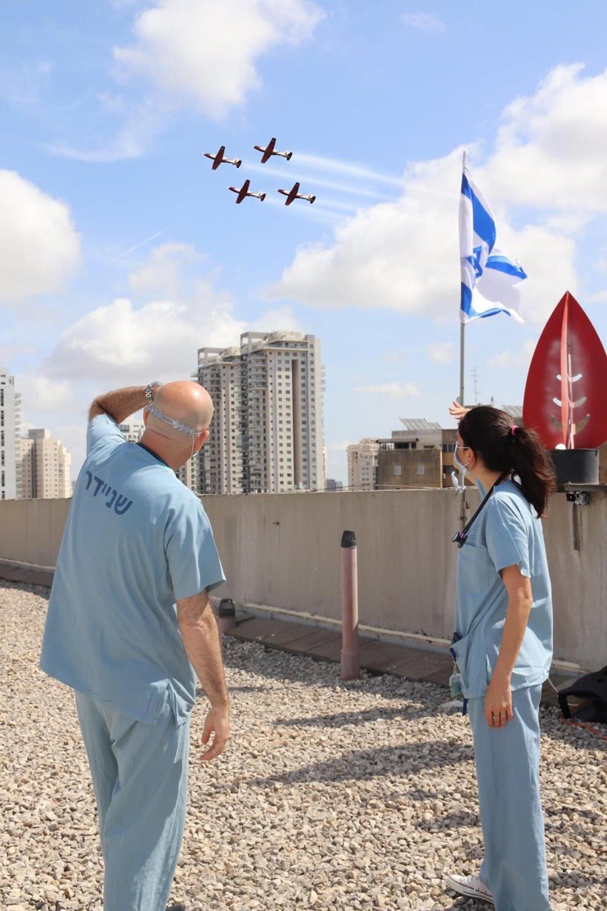 מטס חיל האוויר המסורתי הצדיע השנה לצוותי הרפואה הנאבקים בקורונה, וטס מעל בתי החולים ברחבי הארץ – מנהריה ועד אילת. גם במחלקות הקורונה ציינו את החג במגוון דרכים שונות. גלריה מחגיגות עצמאות בצל הקורונה