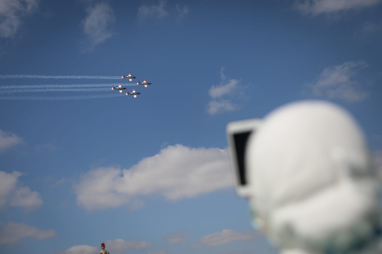 גם המטס המסורתי של חיל האוויר בשמי הארץ הצדיע השנה לעוסקים במאבק נגד הקורונה, כאשר ארבעה מטוסי "עפרוני" חלפו בטיסה מעל בתי החולים ברחבי הארץ ויצדיעו לעשיית הצוותים הרפואיים ומערכת הבריאות כולה.