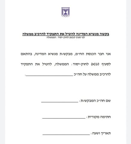 על המכתב שיוגש לריבלין נאמר כי "אני חבר הכנסת החתום מטה, מבקש מנשיא המדינה, בהתאם לחוק יסוד: הממשלה, להטיל את התפקיד להרכיב ממשלה על חה"כ", כאן ייצטרו הח"כים לרשום את שמו של נתניהו ולצרף את חתימתם.