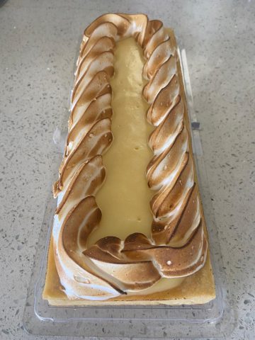 העוגה: שכבה של בצק נימוח עם קרם לימון ומעל מרנג מפנק.