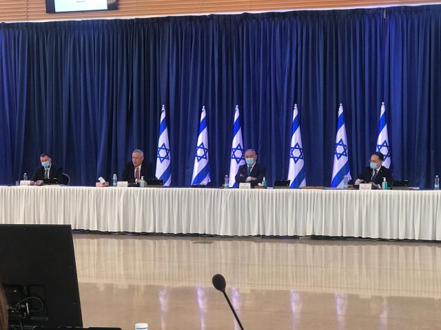 גנץ מדבר בישיבת הממשלה. נתניהו לא כל כך שמח (עטרה גרמן, סרוגים)