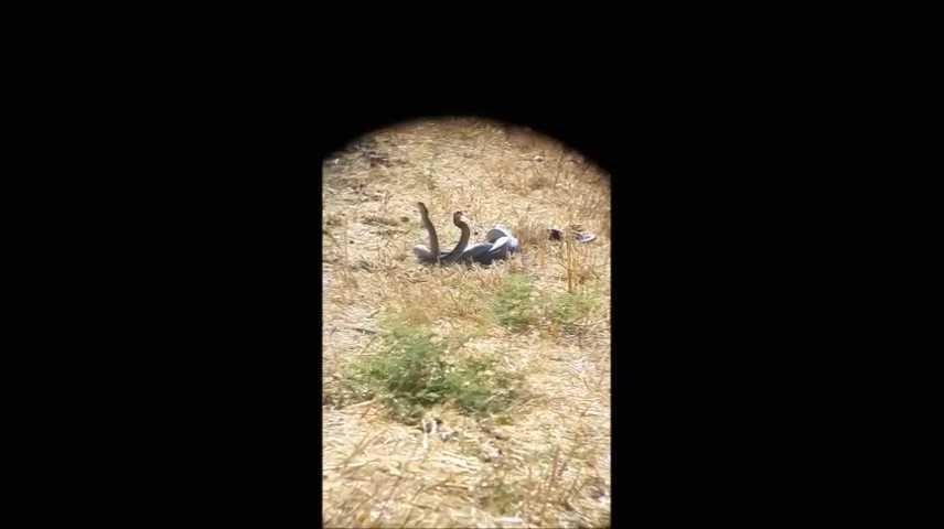 שי כהן, פקח רשות הטבע והגנים במחוז מרכז של רשות הטבע והגנים זכה לתעד דרך עינית המשקפת "ריקוד מלחמה" כזה בין שני נחשים מסוג זעמן שחור ליד הגן הלאומי גבעות מרר בין רחובות לגדרה.