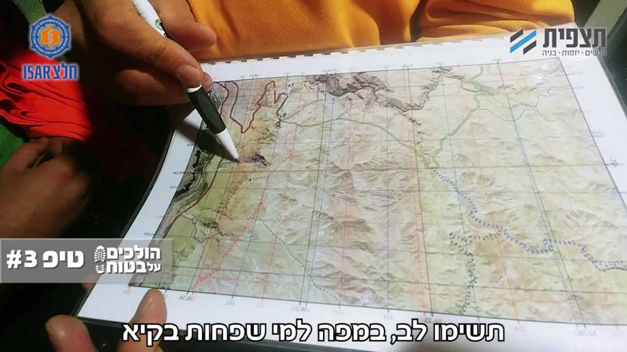 השבוע מתן מוראד, מפקד יחידת חילוץ מגילות, מבקש מכם לבדוק היטב את המפה לפני שיוצאים לטייל, ולראות האם תוואי השטח אותו אתם מתכננים מתאים לכושר הגופני של המטיילים, לעונת השנה ולזמן שנשאר עד לחשיכה.