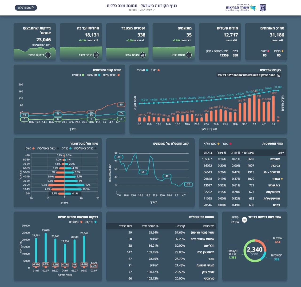 כעת ישנם 12,717 חולים פעילים, מתוכם 85 במצב קשה ו-35 מונשמים. עד כה נפטרו מהנגיף 338 ישראלים.