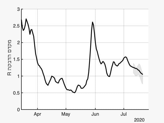 מקדם ההדבקה R, מתחיל להתייצב ולרדת. 1 – משמעותו התייצבות, מתחת ל-1 חלה ירידה, כלומר דעיכה במגפה.