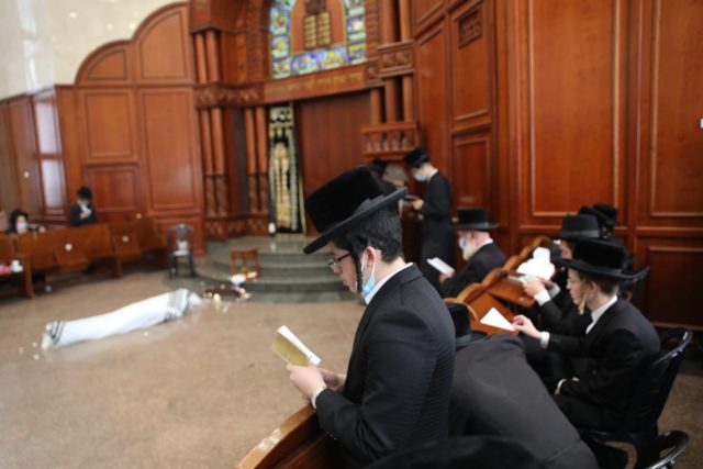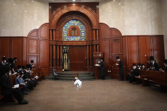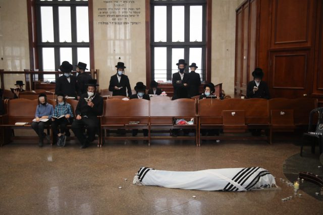 צלם סרוגים, חיים גולדברג תיעד את הנחת מיטתו בבית המדרש של חסידי סדיגורה בבני ברק.