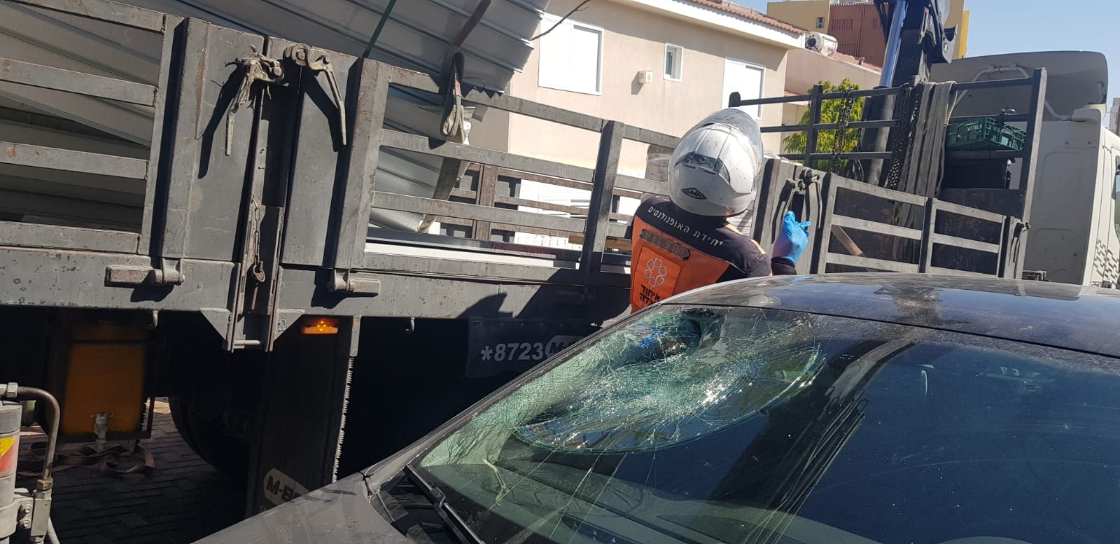 סופי דוניו חובשת באיחוד הצלה שהעניקה לו סיוע ראשוני סיפרה: "מדובר בפועל (מנופאי) שסובל מחבלות ופציעות קשות בגפיים ובפלג גופו העליון לאחר שנפצע תוך כדי פריקת סחורה עם מנוף ממשאית. לאחר הסיוע הראשוני הוא פונה בניידת טיפול נמרץ לבית החולים יוספטל כשמצבו בשלב זה מוגדר בינוני עד קשה".