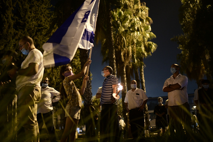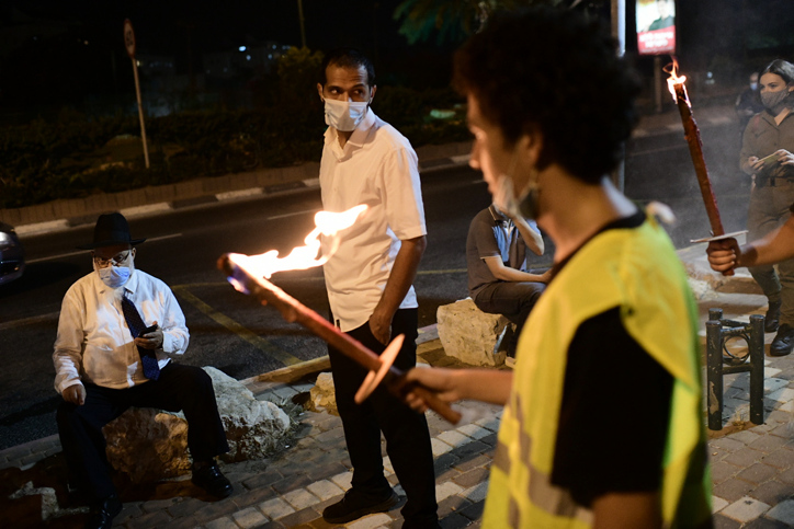 מאות תושבים מפגינים הערב (ש') בצומת סגולה בפתח תקווה, בעצרת מחאה בזירת הפיגוע בה נרצח השבוע הרב שי אוחיון הי"ד.