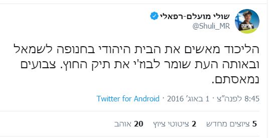 באותו זמן שיגרה מועלם מכתב עוקצני כלפי נתניהו: "בבית היהודי ובהתיישבות ברור כי אילו סוגיית עמונה הייתה זוכה לטיפול הדומה לזה שתאגיד השידור הציבורי החדש מקבל ממך, היינו מזמן נמצאים במקום אחר."