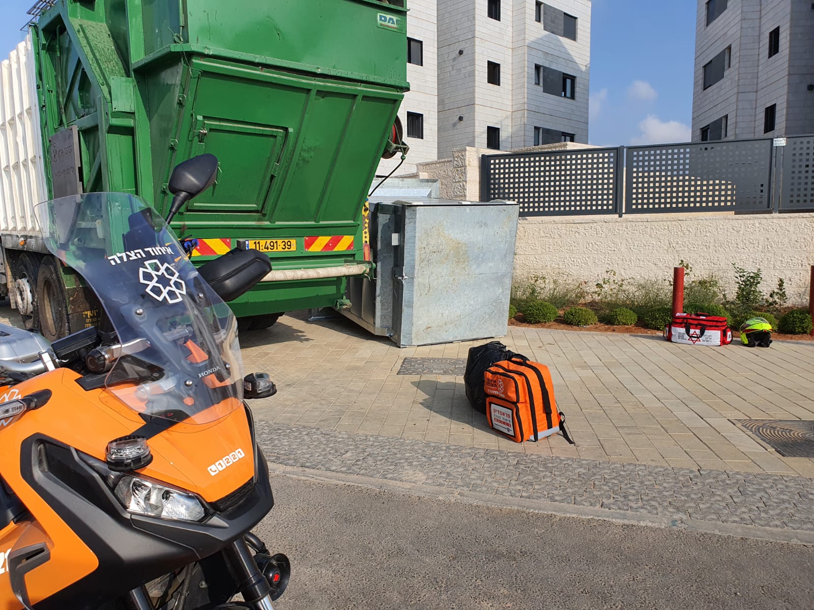 שחר אהרון פרמדיק איזורי של איחוד הצלה סיפר: "לדברי עוברי אורח פח מוטמן נפל על הפועל ממנוף של משאית לפינוי אשפה. הענקנו לו סיוע ראשוני ולאחר מכן הוא פונה למרכז הרפואי מאיר בכפר סבא כשבשלב זה מצבו מוגדר בינוני".