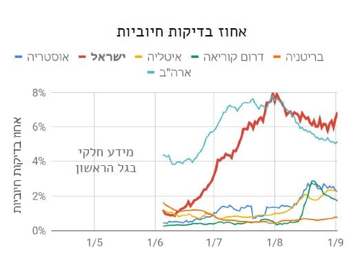 בדו"ח מציינים כי בישראל אחוז הבדיקות החיוביות (כלומר שיעור התוצאות החיוביות מתוך סך הבדיקות) הוא מהגבוהים בעולם והוא "מעיד על תחלואה גוברת בקרב האוכלוסייה הכללית."